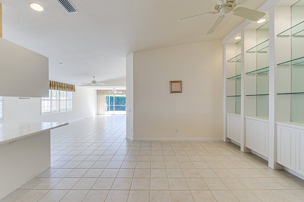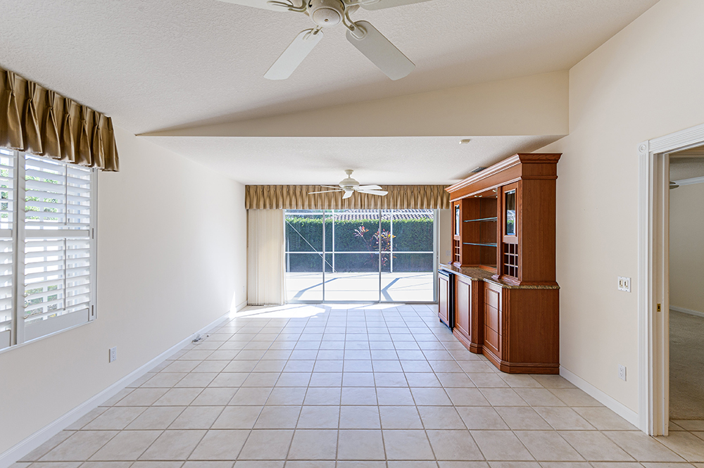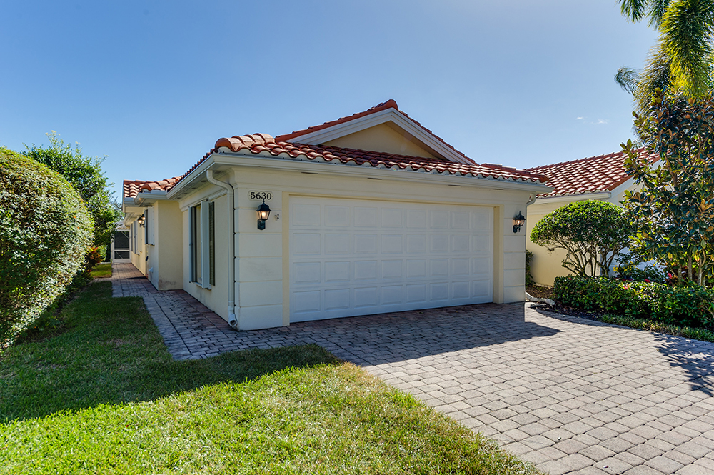 $20K price adjustment!!! LOWEST unit in the community! Superb Move-In ready “Extended Capri Model” 2BR/2BA plus den Villa with an attached 2 car garage. New Roof installed in 2018! Hurricane accordion shutters, tile flooring throughout main living areas and carpets in bedrooms, vaulted ceilings, white Bermuda shutters throughout, central vacuum, white kitchen cabinets, custom built-in bar and shelving unit. Island Walk is a 24 hour guard gated community with great amenities such as a resort-style swimming pool, lap pool, state-of-the-art fitness center, beauty salon, library, eight HAR-TRU tennis courts, four bocce courts and a putting green. In addition the community also has its own Post Office, Bank, Car Wash & Gas Station. Also, there are an abundance of scenic lakes throughout the community connected with walking and biking trails and pedestrian bridges leading to the charming Club House. All amenities, landscape care, irrigation, cable and high speed internet are included with HOA fees.